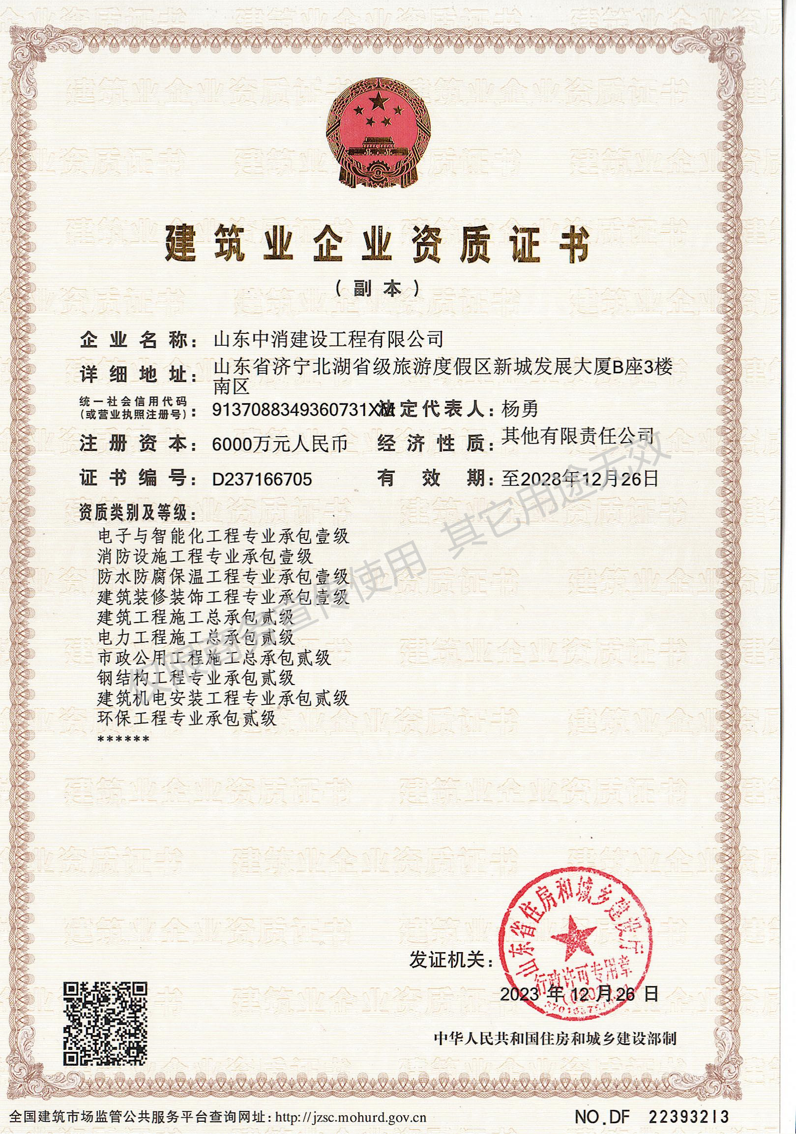 公司成立于2014年,注冊資金6000萬元,具有獨立法人資格,集施工、銷售于一體,作為消防技術協會會長級單位,立足行業多年擁有深厚的行業背景和影響力!主營消防設備銷售,消防工程設計、施工,消防檢測、維保、評估,施工勞務,建筑、電力、市政、機電、鋼結構、環保施工,電子與智能化施工,防水、防腐、保溫施工,建筑裝修、裝飾工程設計、施工等業務。